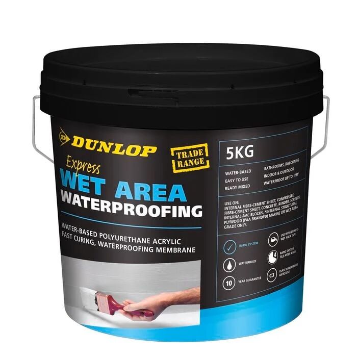 Dunlop Express Wet Area Waterproofing Membrane is a high-performance, fast-drying liquid membrane designed for use in internal wet areas including bathrooms, showers, laundries, and kitchens. This flexible, water-based acrylic polyurethane formulation creates a seamless and highly durable waterproof barrier that is tile-ready within hours.