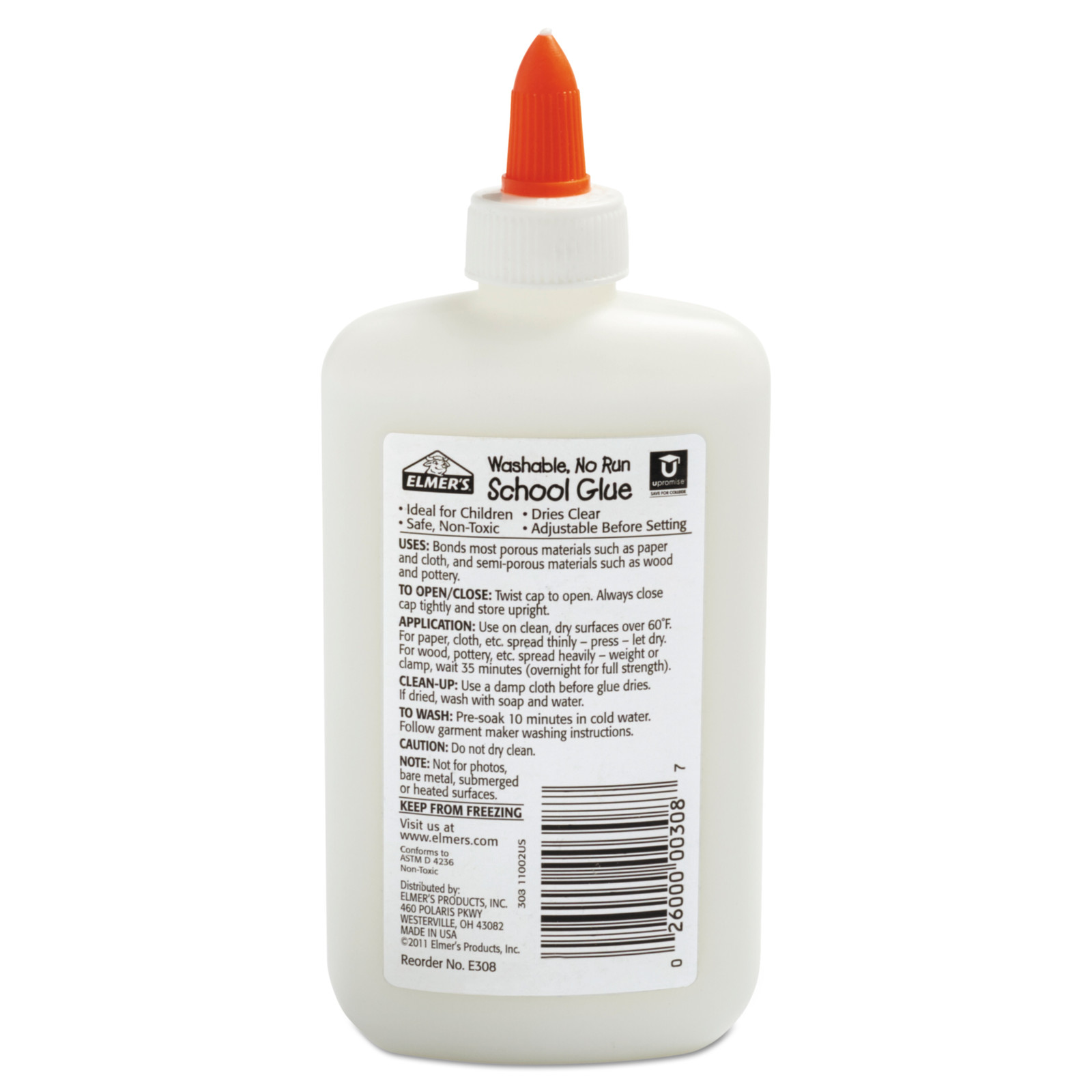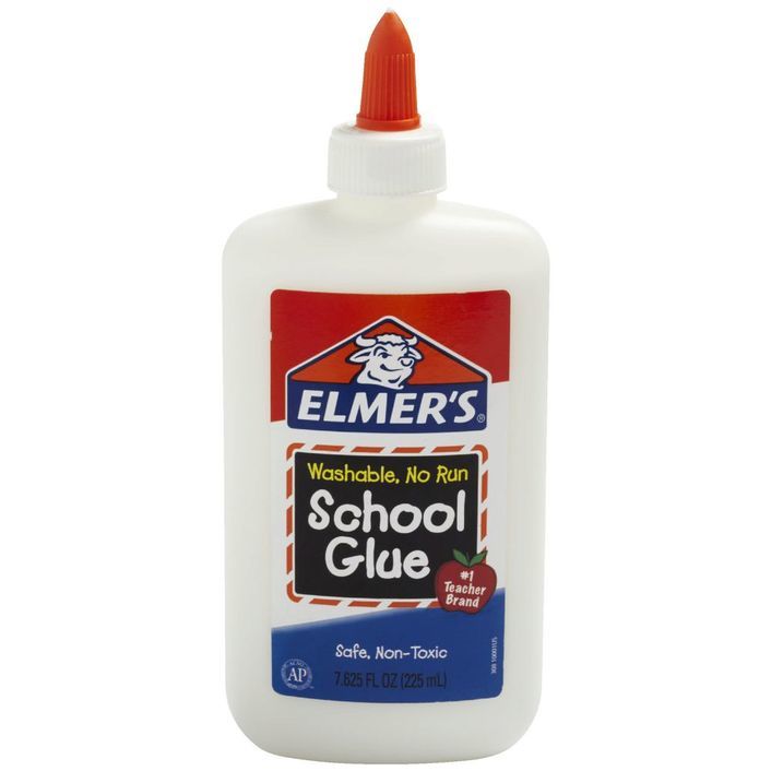 Elmer’s School Glue is a washable, no-run glue that is easy to use and stays where you put it.