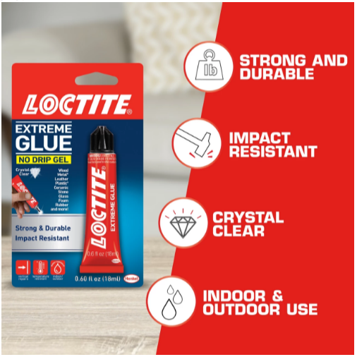 Loctite Extreme Glue No Drip Gel contains a revolutionary Flextec formulation that fuses multiple materials together for a long-lasting bond.