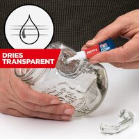 Instant, crystal clear bonds that are water and dishwasher-resistant. Formulated to work on all types of glass.