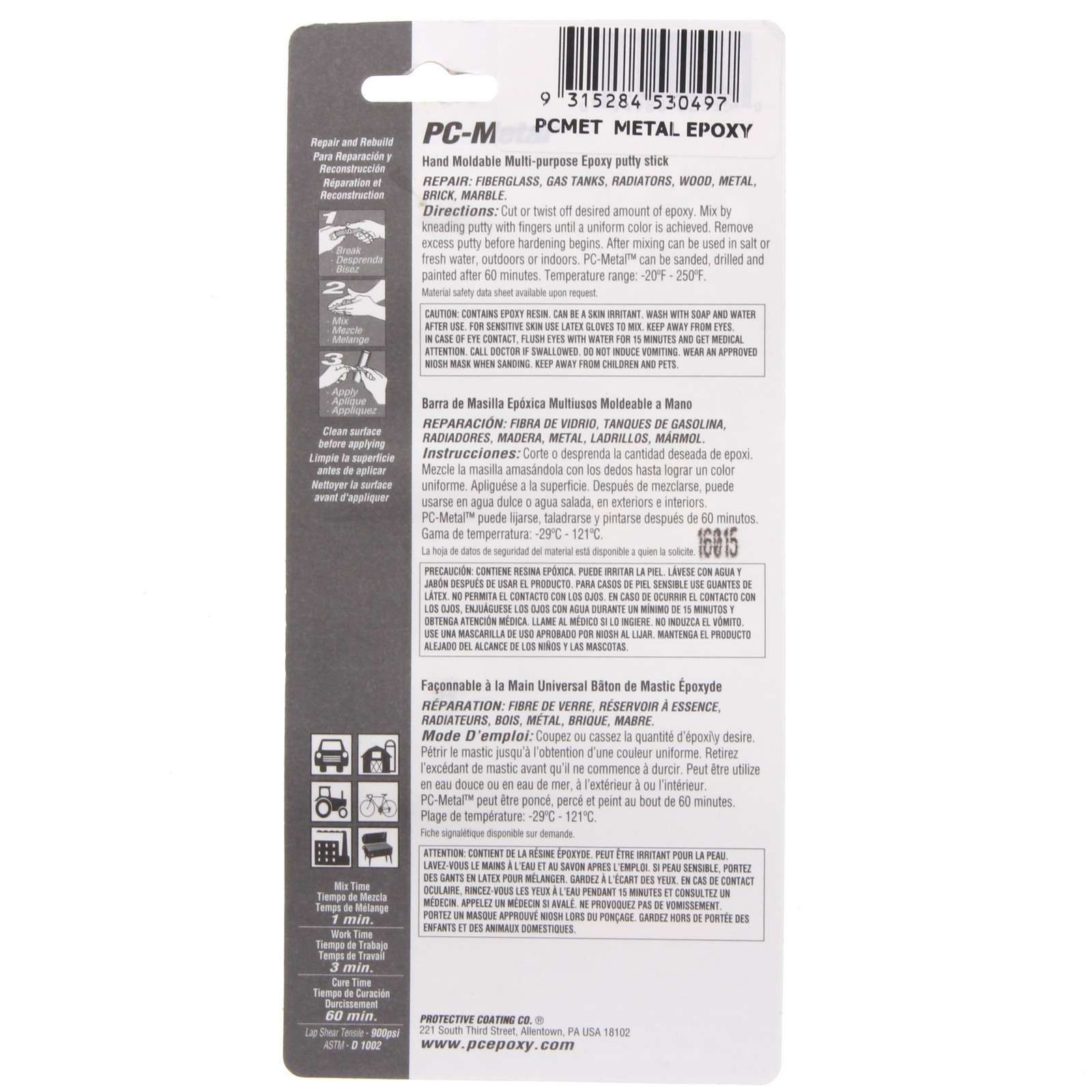 PC-Metal™ Putty Epoxy replaces metal. Mix with fingers and apply. Quickly PC-Metal™ cures to reattach metal (30 min). Cures hard, fast, nonconductive. Contains metal – sticks to metals such as cast iron, zinc, aluminium, stainless steel, steel and copper.