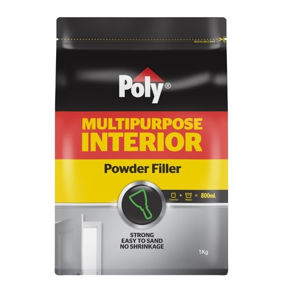 • Add 2.5 parts Polyfilla Interior Powder Filler to 1 part tap water and mix thoroughly into a paste with a clean knife. Once mixed, filler should be used within 1 hour. For deep cracks and holes it is advisable to use a slightly stiffer (less water) mix.