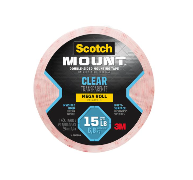 For items that need an undetectable mounting means, reach for the stealth adhering power of Scotch-Mount™ Clear Double-Sided Mounting Tape. Virtually clear, this double-sided permanent tape is perfect for mounting glass, tiles and artwork. Its strong bond holds up to 15 pounds, without the hassle of nails or a hammer because of its 3M™ industrial strength adhesive. So whether you're mounting acrylic cosmetic organizers or a translucent picture frame, affix it confidently with Scotch-Mount™ Clear Double-Sided Mounting Tape.