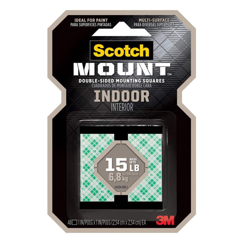 Scotch Indoor Double-Sided Mounting Squares are ideal for painted surfaces and allow you to quickly and easily beautify and organize your space. Whether you’re creating a gallery wall or affixing the family chore chart, these permanent double-sided foam squares hold up to 15 pounds and deliver a strong bond every time because of their 3M™ industrial strength adhesive. Your work is up and ready to admire in 30 seconds flat – no nails or hammer needed. Never let how you’re going to hang it get in the way of your creativity with the powerful adhesion of Scotch Indoor Double- Sided Mounting Squares.