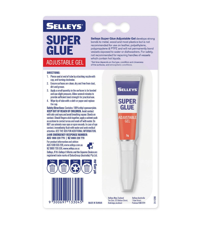 Transform your household repairs with the precision and reliability of Selleys Super Glue Adjustable Gel. Perfect for quick fixes, durable bonds, and easy application!