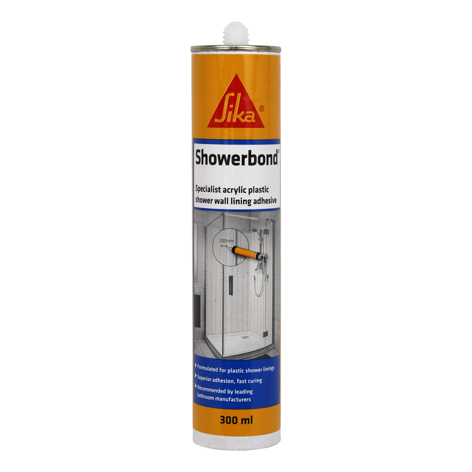 Showerbond is a solvent based, fast grab, gun grade adhesive. It has been specifically formulated for bonding plastic shower linings to gypsum plasterboard or fibre cement wall linings, as well as timber.
