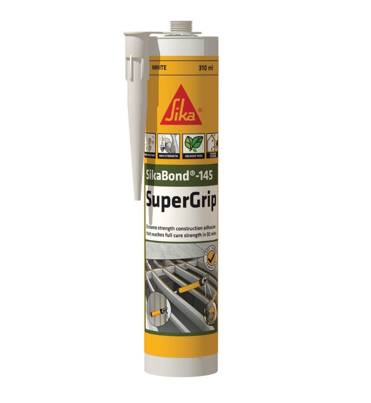 SikaBond®-145 SuperGrip is a premium grade one-component polyurethane construction adhesive with good initial grab and high strength after 30 minutes^. SikaBond®-145 SuperGrip is a versatile, ready to use, fast curing, general purpose construction adhesive suitable for interior and exterior use.