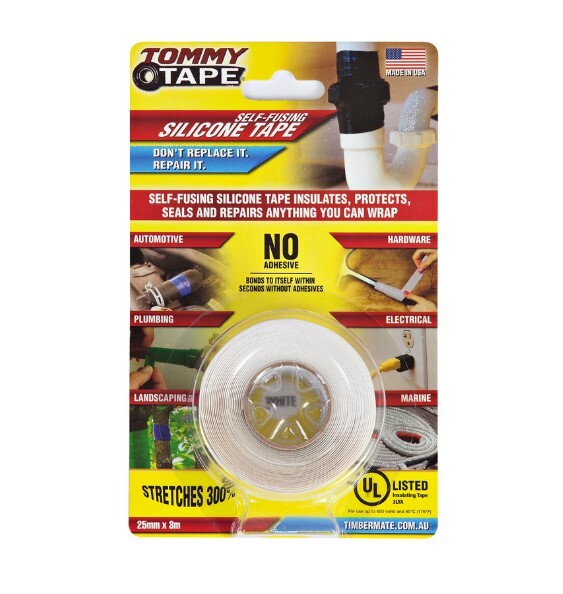 Tommy Tape self-fusing silicone tape products are designed to save you time and money around the house, in the yard, on your car, or at work. Use them to protect or repair plumbing, electrical, home and garden tools, automotive, and even industrial equipment.
